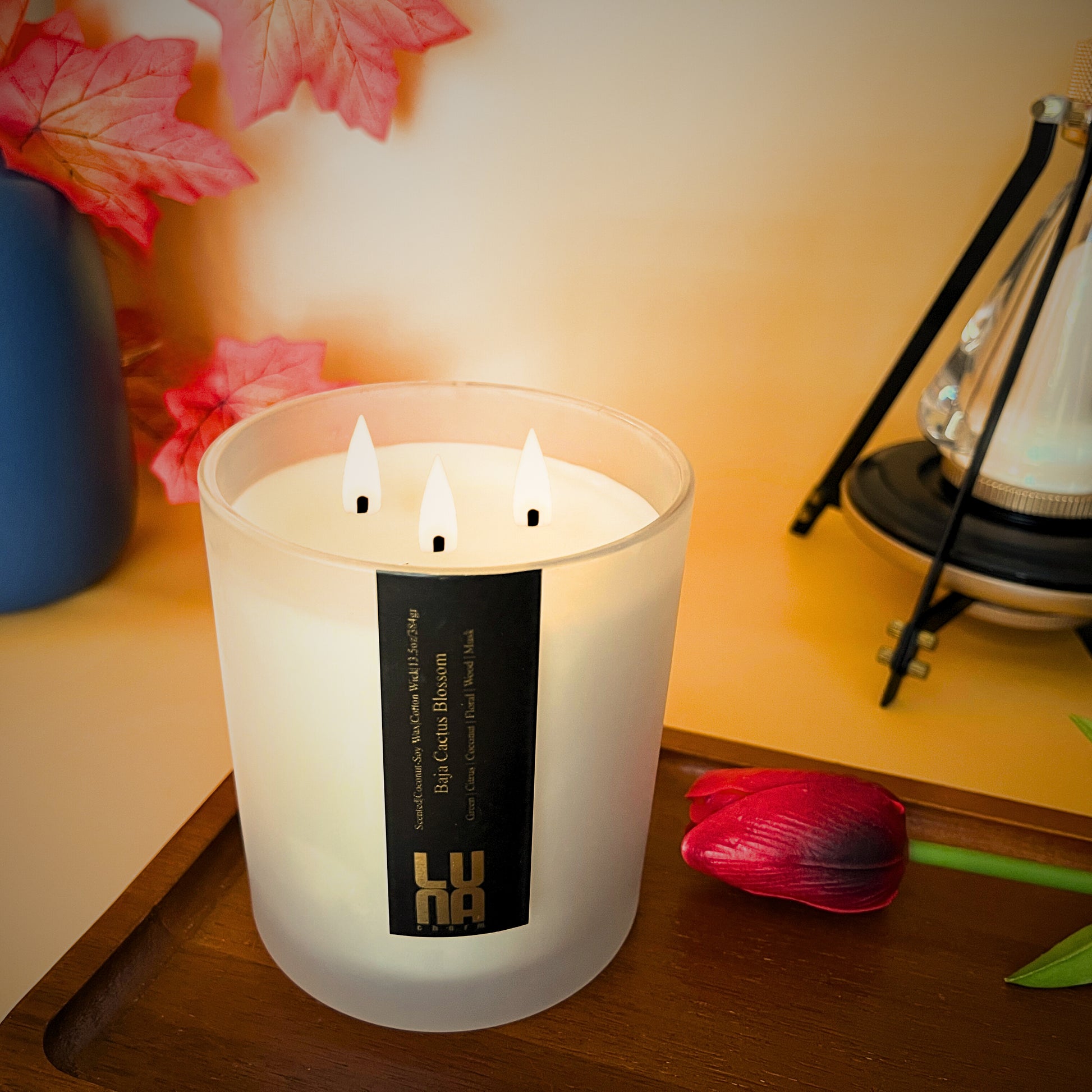 Cire naturelle de noix de coco et de soja | 3 mèches en coton | ( 14 pot oz - 13,5 oz de cire)