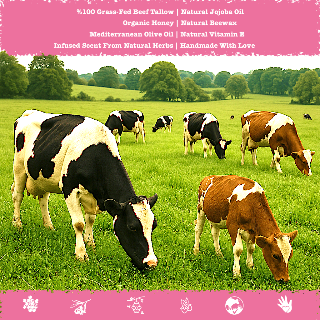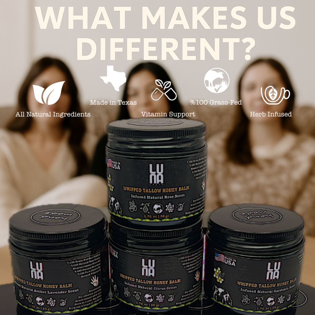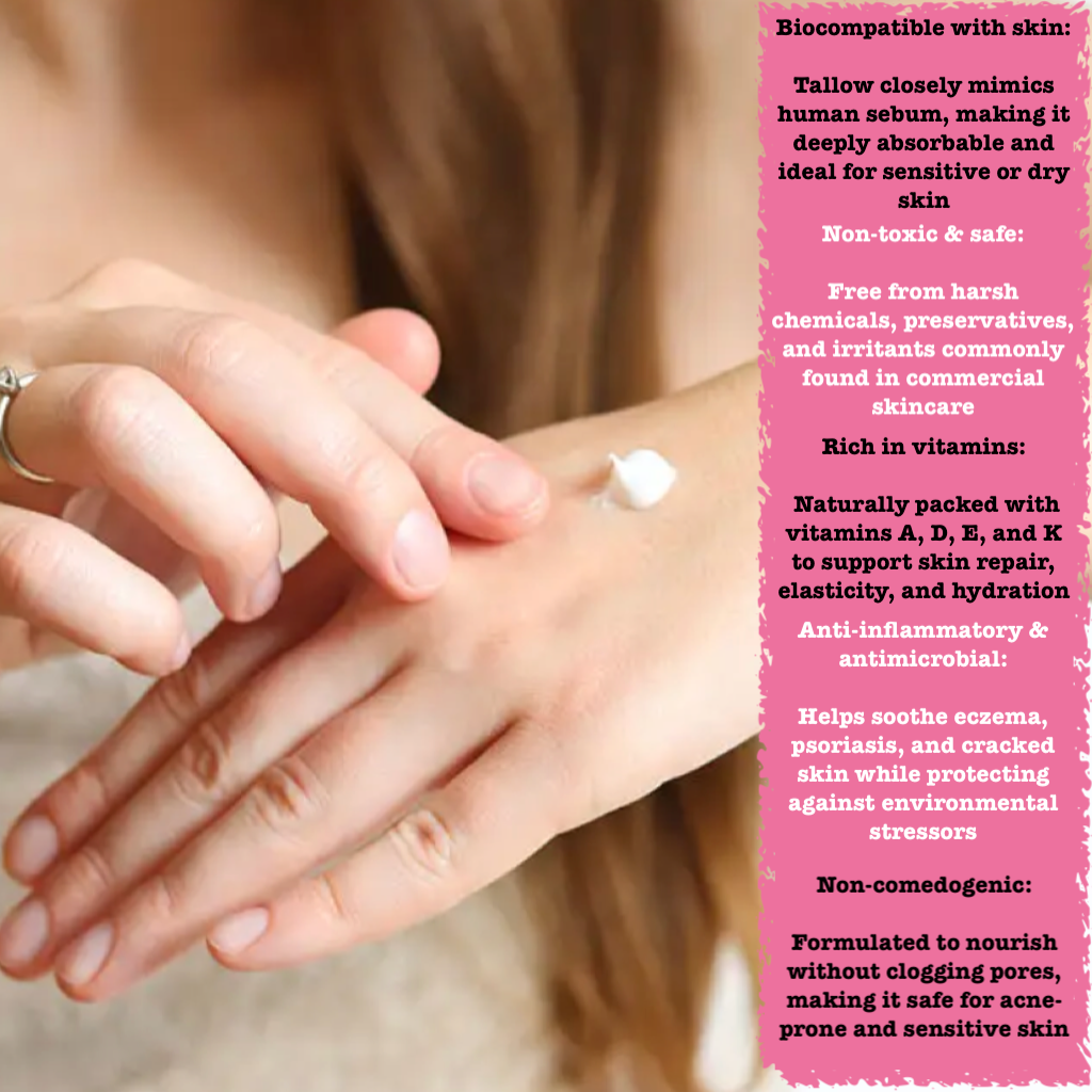 Whipped Tallow Honey Skin Balm, Grass Fed Beef Tallow, Natural Honey and Beewax, Jojoba Oil, Genuine Mediterranean Olive Oil, Infused Rose Scent, 1.75 oz